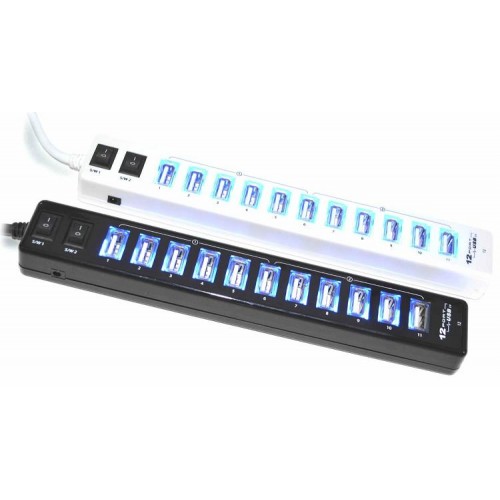 Buddy 12 Port USB Hub with 2 Control Switches - White or Black